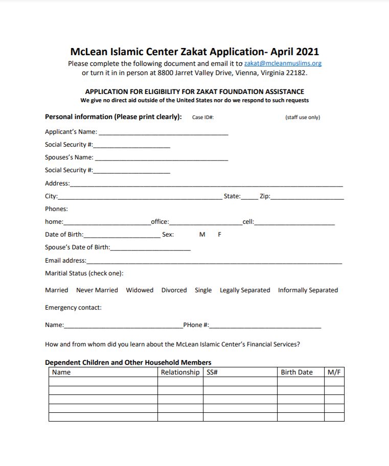 We care about our community members. Many people in our community are struggling with financial hardship and distress. We have zakat funds available, which have been donated by many generous community members. If you are in a state of financial difficulty and believe that you are zakat-eligible, please complete the form below. We pray that Allah makes things easier for you.